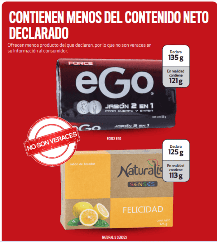 La Procuraduría Federal del Consumidor en sus estudios mensuales de calidad ha revelado cuáles son los mejores y peores jabones que hay en el mercado. Esto se hace a través de diversos estudios donde analizan distintos componentes que tienen que cumplir de acuerdo con la leyes de normartividad NOM-002-SCFI-2011; NOM-141-SSA1/SCFI-2012 y NMX-1-003-NYCE-2018.Se analizaron 40 muestras de jabones y se hicieron 44 pruebas del 16 al 18 de mayo del 2023. Entre las marcas que se eligieron para el estudio, resalta Escudo, Lirio, Rosa Venus, Dove, Zest, Palmoilive, entre toros.Además de aprobar el estándar de calidad, se revisa el etiquetado, ya que éste debe contener información valiosa y verídica para el consumidor siguiendo la siguiente simbología: En el estándar de calidad, se evaluó acorde a la NMX-Q-003-NYCE-2018 que contiene las especificaciones aplicables a los jabones de tocador que sirven como referente de calidad en:Ahora bien, los jabones que reprobaron la prueba de calidad son los siguientes:Heno de PraviaEste jabón no comprobó la información al consumidor respecto a las frases: "Jabón Natural" "Su inconfundible fragancia reproduce el aroma fresco y limpio del heno recién cortado".MajaAl igual que el anterior, no comprobó la información con la frase "La esencia que seduce al mundo".Naturalis SensesEste jabón reprobó tanto la información al consumidor como el contenido neto.Palmolive Naturals Reprobó en información al consumidor al no comprobar la frases: "Nutrición humectante", "Nutrición para tu piel" "Si tu piel se nutre, todo se nutre", "Funciona como alimento para tu piel" "Fórmula nutritiva" "Alimento para tu piel".Neutro GrisiReprobó la fase de información al consumidor al no comprobar la frase "pH cercano a la piel".Force EgoEste jabón para hombres reprobó en contenido neto y la Profeco lo calificó como "No veraz".Mantente al tanto de las noticias y únete a nuestro canal de WhatsApp.MM