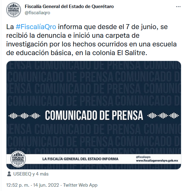 Un estudiante se reporta delicado de salud luego de que compañeros le rociaron alcohol y prendieron fuego dentro de la telesecundaria Josefa Vergara, en una comunidad de Querétaro.En respuesta a la agresión, padres de familia se manifestaron en las instalaciones de la escuela para exigir acciones tras la agresión contra el menor.De acuerdo con testigos, el menor fue rociado con alcohol y quemado, razón por la cual se encuentra en el Hospital del Niño y la Mujer; su condición es delicada.Al respecto, la Fiscalía de Querétaro detalla que, desde el pasado 7 de junio, se recibió la denuncia e inició una carpeta de investigación por los hechos ocurridos" en una escuela de educación básica, en la colonia El Salitre"."La Unidad Especializada en Justicia para Adolescentes realiza las investigaciones. Los servicios periciales han valorado las lesiones provocadas en el adolescente y con base en ello, se dará continuidad al proceso penal hasta el total esclarecimiento de los hechos", se lee en un comunicado.OF