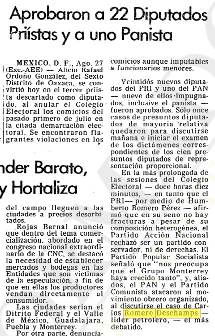 La crisis de combustible en México derivada del combate al robo de hidrocarburos quizá comenzó a gestarse un día concreto, hace cuatro décadas: el 27 de agosto de 1979.En esa fecha, la Comisión Dictaminadora del Colegio Electoral de la Cámara de Diputados, tras 12 horas de debate, calificó la elección de 22 legisladores del PRI pese a las anomalías durante la jornada electoral.Entre los nuevos legisladores federales apareció por primera vez Carlos Antonio Romero Deschamps, entonces líder petrolero de la sección 35 del Sindicato Nacional de Trabajadores Petroleros de la República Mexicana (STPRM), y electo diputado del PRI por la vía del voto popular. Su caso “fue el más debatido”, según consignó EL INFORMADOR en la crónica de esa época. La oposición acusó a Romero Deschamps de inelegible como legislador porque enfrentaba procesos penales por secuestro, amenazas e injurias. No obstante, asumió su curul y adquirió el fuero.La Cámara de Diputados dispone de una valiosa herramienta para hurgar en nuestra historia política: todas las transcripciones de los debates legislativos desde principios de siglo están consultables en línea. La crónica parlamentaria del debut de Romero Deschamps como diputado federal, bien pudo haber ocurrido hoy en el pleno de la actual 64 Legislatura.Este es un breve recuento.***Gerardo Medina, candidato panista a diputado, tomó la palabra. Protestó, pero le concedieron sólo 15 minutos. Cuando se trata de política, sentenció, el lema del partido en el poder y sus beneficiarios es uno solo: “de todas, todas”.Había perdido con 16 mil votos frente a los 40 mil del priista Romero Deschamps en el Distrito 28 del D.F. “No basta informar cuántos votos sacó el que aparece en mayoría”, reclamó, “sino cómo los obtuvo”.“Petróleos Mexicanos proporcionó al candidato del PRI no sólo materiales sino ciento veinte trabajadores de la Refinería y de la Gerencia de Proyectos y Construcción, a sueldo de la empresa y a tiempo completo por tres meses, los cuales sirvieron para todo, desde claque aplaudidora hasta brigadas de represión, como lo constataron algunos de los propagandistas amenazados pistola en mano.(Silbidos en las galerías.)”Señor Presidente, acotó Medina tras la rechifla, “me descuenta el tiempo de los inteligentes de las galerías”, y continuó:“El cómo y por qué de los votos en favor de nuestros contrincantes podría fundarse también en su personalidad. Su propia personalidad que fue pasto de noticias en la nota roja en los periódicos, con denuncias por atropellos probados y confirmados y como vendedor de plazas de Petróleos Mexicanos”.Hesiquio Aguilar, diputado priista de la Comisión Dictaminadora encargada de calificar la elección, anticipó a dónde iba el panista. Pidió la palabra y atajó que el órgano a su cargo “no tiene conocimiento de hechos que configuren que el presunto diputado Romero Deschamps tenga proceso penal pendiente o sentencia ejecutoria en su contra por la comisión de algún delito. (Aplausos.)”***Después vino un acto inédito de teatralidad legislativa. El diputado priista Hesiquio Aguilar solicitó la lectura de dos documentos enviados a la Cámara, firmados de puño y letra por el Procurador General de Justicia del D.F. En cada foja, correspondiente a las averiguaciones previas SC/2751/79 y SC/3462/79 contra Romero Deschamps por amenazas, injurias y secuestro, se enfatiza que “dichas imputaciones no se encuentran apoyadas por ninguna declaración testimonial” y en ambos casos se capitula: “no existen ningún elemento de prueba”.El diputado Gerardo Unzueta del Partido Comunista Mexicano, exaltado, arrebató la palabra para denunciar esa simulación: “La Procuraduría actúa como tribunal e interviene para juzgar si hay elementos o no de consignación, que es uno de los problemas graves de la estructura de nuestro sistema jurídico, por medio de los cuales el juicio sobre los actos cometidos contra una u otra persona, queda no a juicio del Poder Judicial, no a juicio de los jueces, no a juicio de los juzgados, sino a juicio de una dependencia del Poder Ejecutivo. Para nosotros ese papel tiene el valor del papel en que está escrito”.Gerardo Unzueta aludió entonces al trabajador de Pemex que denunció a Romero Deschamps por secuestro, una práctica sistemática del líder petrolero a lo largo de cuatro décadas para anular a la disidencia sindical y ejercer el control sobre sus agremiados y sus cuotas. Narró lo sucedido:“Francisco Ávila hizo una inocente declaración al periódico Ovaciones, a un periodista que se le ocurrió pararse a las puertas de la Refinería; una tímida declaración en la que él simplemente decía que él no era partidario del señor Deschamps, y que el señor Deschamps no tenía partidarios en la Refinería; eso es todo, esa fue la declaración que hizo Ávila Pérez. Y al día siguiente fue secuestrado casi a las puertas de la Refinería, su mujer fue sacada del auto de los cabellos; así fue, señores, sería deseable que nunca ocurriera a la familia de ustedes, a algún familiar de ustedes, un hecho de ese carácter; ¡ojalá!”Por qué no se ha llamado a comparecer ante el pleno al denunciante, criticó Unzueta: “se debía escuchar a Francisco Ávila Pérez y no atenerse al papelito, o al papelote, que ha hecho la Procuraduría del Distrito Federal. Yo creo que aquí va a ser aprobado el dictamen en favor de Romero Deschamps. Y no habremos escuchado a quien fue agredido”.Antes de calificar la elección del polémico líder petrolero, el panista Gerardo Medina agotó, resignado, sus tres minutos restantes: “Resulta inútil el acopio de datos, señalar el empadronamiento falso, fraudulento, ilegal, de gentes de la Refinería de Tula en el padrón del Distrito Electoral 28. Todo resulta inútil”.Después la Comisión Dictaminadora avaló con 55 votos a favor, sólo 23 en contra, la elegibilidad de Romero Desc