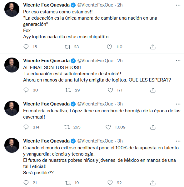 El Presidente Andrés Manuel López Obrador nombró como secretaria de Educación a Leticia Ramírez, quien se desempeñaba como responsable de Atención Ciudadana en el Gobierno federal, en sustitución de Delfina Gómez, quien va por la gubernatura del Estado de México.En su conferencia "mañanera" de este lunes en Palacio Nacional, López Obrador expresó que Leticia Ramírez es una mujer de confianza, preparada, honesta y con convicciones.Ante el nombramiento de Ramírez, políticos y usuarios reaccionaron a favor y en contra en redes sociales."Por eso estamos como estamos!!", expresó el expresidente Vicente Fox."En materia educativa, López tiene un cerebro de hormiga de la época de las cavernas!!", escribió el exmandatario de México en otro mensaje."AL FINAL SON TUS HIJOS!! La educación está suficientemente destruida!! Ahora en manos de una tal lety amigita de lopitos, QUE LES ESPERA??", agregó Vicente Fox.La doctora Beatriz Gutiérrez Müller, esposa del Presidente López Obrador, celebró el nombramiento de la maestra Leticia Ramírez.El periodista Salvador García Soto refirió que Leticia Ramírez "pasa de atender quejas ciudadanas a manejar la Educación y uno de los presupuestos más grandes de este país".García Soto agregó que la nueva titular de la SEP, además que es de confianza del Presidente López Obrador, "es cercana a René Bejarano y a Dolores Padierna"."Su papel al frente de Atención Ciudadana se destacó por su enorme sensibilidad y vocación de servicio. Otra maestra honesta y comprometida dirigirá la SEP", escribió la diputada federal de Morena, Andrea Chávez.Salvador Guerrero Chiprés, quien preside el Consejo Ciudadano, le deseó mucho éxito a Leticia Ramírez Amaya."La conozco hace años en la lucha y lo que les puedo adelantar es que es una mujer honesta. No le conozco ni la preparación, ni el programa educativo, ni los conocimientos que la califiquen al puesto. Espero haga un buen trabajo. Al tiempo", expresó el comunista Manuel Díaz."Leticia Ramírez no tiene experiencia ni luces para estar frente de a la SEP, pero le es leal. Igual que Delfina. Rosario Robles le puso oficina en la secretaría particular de la jefatura de Gobierno para que gestionara las peticiones que le hacían a AMLO en su campaña del 2000", señaló el perredista Fernando Belaunzarán.OA