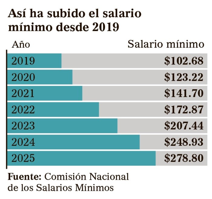 La Presidenta de México, Claudia Sheinbaum, anunció un aumento al salario mínimo para 2025, con lo que este pasará de 248.93 pesos diarios a 278.80 pesos a nivel nacional. Este es el primer ajuste de su mandato, en el que se ha comprometido a que para 2030 el sueldo básico permita adquirir más de dos canastas básicas.En conferencia matutina, destacó que el incremento es resultado de un consenso entre el Gobierno, los sindicatos y el sector empresarial. “Hemos llegado a un acuerdo, un buen acuerdo”, declaró.Pablo Pineda, académico de la Universidad de Guadalajara, consideró el aumento como positivo, pero con retos. “El impacto será mayor en sectores con alta capacidad de productividad, aunque las microempresas podrían enfrentar dificultades para absorber el incremento”.Por su parte, Sergio Negrete, académico del ITAM, opinó que el salario mínimo sigue siendo insuficiente. “Ocho horas diarias de trabajo no se remuneran con un sueldo que esté a la altura de las necesidades de los trabajadores. Aunque beneficia a algunos, sigue por debajo de lo que dicta el mercado laboral”.Ambos especialistas coincidieron en que México aún tiene un largo camino para garantizar un salario competitivo a nivel internacional. Mientras en Estados Unidos el salario mínimo es considerablemente más alto, países como Costa Rica, Uruguay y Chile también superan a México en esta materia.El secretario del Trabajo y Previsión Social, Marath Bolaños, informó que el aumento beneficiará a 8.5 millones de trabajadores y destacó que, desde 2018, el poder adquisitivo del salario mínimo ha crecido 135%. Además, explicó que el salario en 2025 permitirá cubrir 1.85 canastas básicas, frente a una sola canasta que se podía adquirir en 2018.El incremento al salario mínimo da continuidad a la política implementada durante el Gobierno de Andrés Manuel López Obrador, donde el salario mínimo aumentó un 110% en términos reales. Sheinbaum enfatizó que estos esfuerzos buscan revertir décadas de estancamiento salarial. “En el periodo neoliberal, México era conocido por su mano de obra barata. Eso era deshumanizante”. José Luis Carazo, vocero del Sector Obrero en la Comisión Nacional de Salarios Mínimos, señaló que la meta a largo plazo es recuperar el poder adquisitivo que el salario tenía en 1976, lo que equivaldría a 350 pesos diarios en la actualidad. A pesar de los desafíos, Carazo destacó los avances en derechos laborales logrados, como el aumento en los días de vacaciones y la eliminación del outsourcing. El aumento comenzará a aplicarse el 1 de enero de 2025.