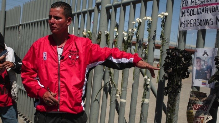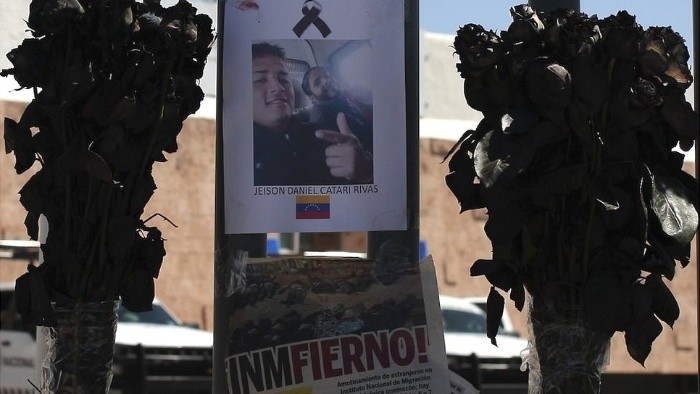 "Nunca imaginé que ese momento en el que yo sentía tanta desesperación se haría tan conocido. No me hice famosa en Venezuela y me vine a hacer famosa aquí, en México… pero por algo tan cruel".Viangly Infante se convirtió en el rostro más reconocible y doloroso del trágico incendio en el centro del Instituto Nacional de Migración (INM) de Ciudad Juárez, en la frontera norte de México, que el pasado lunes acabó con la vida de al menos 39 personas.Ella es la mujer que fue grabada y fotografiada desconsolada en la noche del siniestro junto a una ambulancia, golpeando el vehículo con su bebé en brazos y gritando sin poder parar de llorar: "¡Negro! ¡Negro, estoy aquí, negro!".Así es como llama a Eduard Caraballo, su marido y padre de sus tres hijos que estaba en el interior de la ambulancia tras haber resultado herido en el incendio de las instalaciones en las que, como otras decenas de migrantes, estaba retenido."Me asomé y vi que lo estaban reanimando. Es ahí cuando entré en shock", recuerda día y medio después de la tragedia y tras visitarlo en El Hospital General de Zona No. 35, donde se recupera con oxígeno de la intoxicación por humo sufrida.Aunque lo más sobrecogedor de su testimonio es justo lo que pasó antes del video que se hizo viral: la joven estaba también en la estación migratoria -aunque en una zona diferente a la de los hombres- en el momento en que se originó el fuego."Empecé a oír gritos, golpes en las paredes y empezó a salir humo por todos lados. Por la oficina, el baño, todo. Yo les digo que abran la puerta, que abran la puerta… pero me sacaron a la calle y a ellos los dejaron ahí".Infante comparte con BBC Mundo su terrible experiencia justo después de dejar unas flores en el improvisado altar repleto de velas y fotos que se ha formado en la entrada del centro para migrantes donde ocurrió la dantesca escena.En México no se deja de hablar del sobrecogedor video de cámaras de seguridad que circula en internet y que muestra cómo algunos funcionarios del centro abandonan la escena una vez que se origina el fuego sin abrir la celda en la que un grupo de migrantes permanece encerrado."Tuvieron la oportunidad de abrir la reja y no lo hicieron. Ninguno estaba detenido por robo, ni muerte, ni nada: solo por ser migrante. Y tenían derecho a vivir", lamenta la venezolana.El matrimonio llegó desde La Guaira a Ciudad Juárez a finales del año pasado. Atrás dejaron una penosa travesía que conocen bien miles de migrantes y que les obliga a atravesar la peligrosa selva del Darién. Junto a ellos, viajaron sus hijos de 13, 12 y 1 año.Mientras esperan su oportunidad para cruzar a Estados Unidos de manera legal, en México su marido se ganaba la vida vendiendo flores por la calle. Ella trabajaba en una paletería, pero la dejó cuando su bebé se enfermó y comenzó a sufrir convulsiones para lo que necesita tratamiento.Precisamente, el lunes que su marido fue detenido por las autoridades migratorias había salido a comprar medicamentos para ella. Infante asegura que aquello no tuvo ninguna justificación, ya que el núcleo familiar cuenta con un permiso de estancia de 90 días en el país y con una visa humanitaria por un año recién aprobada.Con sus tres hijos, acudió a la estación con toda la documentación para demostrar que la estancia en México de su marido era legal. Desde que llegó en torno a las 14:00 h la dejaron en la sala de espera de la zona destinada a mujeres y le aseguraron que en breve lo liberarían.Pero cuando en la noche empezó a aparecer el humo de lo que el gobierno mexicano identificó como una quema de colchonetas a modo de "protesta" por los migrantes que temían ser deportados, ella aún seguía en el centro y su marido continuaba encerrado."Ahí sacaron a las 15 mujeres que estaban retenidas en la zona de familias donde yo estaba, pero en la que no hay rejas ni nada. Yo pregunté que por qué no sacaban a los hombres. Y lo que solo me dijeron fue: ellos se quemaron. Yo ahí me desesperé", asegura.Juan Ortega es uno de los fotógrafos que tomó la famosa imagen de Viangly Infante la noche de la tragedia. Nunca le había tocado cubrir un acontecimiento de esta gravedad y reconoce que estaba muy nervioso y sin saber bien qué hacer, hasta que escuchó los gritos de la mujer."Ella fue el símbolo del dolor, de la desesperación que se vivía en el lugar. Lo veías y te quedabas frío, sentías su desesperación y su impotencia de no saber qué pasaba con su marido, y ver que cada vez salían más heridos y había más muertos", recuerda.La mujer calcula que los bomberos tardaron unos 15 minutos en llegar. Los daños sufridos en las vías respiratorias hacen que su marido apenas pueda hablar aún, pero este le transmitió que si pudo salvarse de morir entre las llamas fue que se metió al baño para resguardarse."A mí, en ese momento, no me importaba el humo, no me importaba nada. Solo quería que abrieran las rejas. Lo que les pido a las autoridades es que sean un poco más humanas y que se pongan la mano en el corazón", reclama.En el altar improvisado de homenaje a las víctimas, se puede ver la foto de dos de ellos: Óscar José Regalado, quien falleció en el incendio; y Jeison Daniel Catari, que resultó herido.En la imagen puede verse a ambos en una furgoneta que sus amigos identifican como el vehículo de Migración en el que los llevaron al centro el pasado lunes. Fue la última noticia que tuvieron de ellos antes de enterarse por los medios de lo que pasó en la noche.Ambos se ganaban la vida, como se puede ver a tantos otros migrantes en las calles de Ciudad Juárez, apostados en los semáforos donde ofrecen limpiar los vidrios de los autos a cambio de unas monedas.Sus amigos cuentan que cuando llegaron las autoridades, Catari no pudo escapar porque sufre problemas para caminar. Por eso, Regalado -a quien llamaban cariñosamente "el Gordito"- se quedó con él para no dejarlo solo."Su plan era entrar 