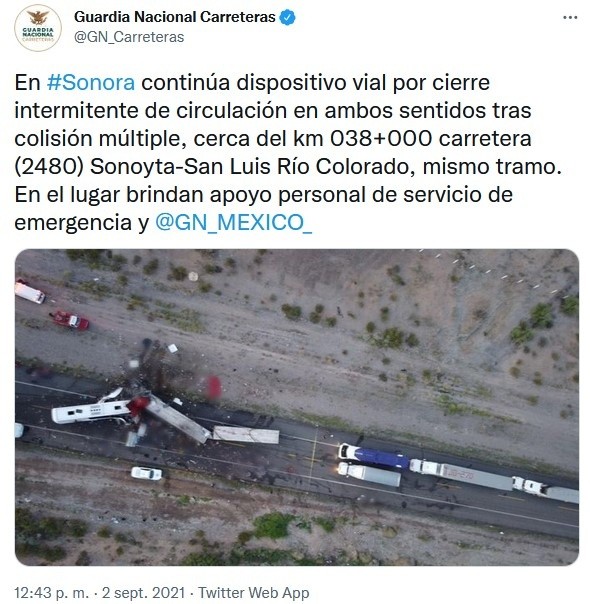 Autoridades de Sonora corrigieron a la baja el número de fallecidos por un acccidente carretero esta madrugrada. Un total de 13 personas murieron y otras 25 resultaron heridas, 6 de ellas de gravedad, en el choque en la autopista Sonoyta-San Luis Río Colorado, informó este jueves la Fiscalía General de Justicia del Estado. Previamente había reportado un saldo de 16 muertos y 22 lesionados"Una vez concluido el procesamiento forense y la verificación hospitalaria, se tiene saldo de 13 personas fallecidas y 25 lesionadas en el accidente carretero en el tramo Sonoyta-San Luis Río Colorado", indicó la Fiscalía en un comunicado.Hasta el momento sólo ha sido posible lograr la identificación de 7 de las 13 personas fallecidas y entre las no identificadas se encuentra un menor de 5 años de edad.De acuerdo con información de la fiscalía, el accidente ocurrió la madrugada de este jueves en el kilómetro 39 de la carretera Sonoyta- San Luis Río Colorado. Los hechos ocurrieron cuando un autobús de pasajeros colisionó contra un tráiler estacionado a un costado de la vía. Tras ello, el camión siniestrado fue impactado nuevamente por otro tráiler que venía transitando por el otro carril de circulación.Por su parte, la Guardia Nacional dijo que se realiza un dispositivo vial por el choque múltiple en la carretera de Sonora, que provoca el cierre intermitente de la circulación en los dos sentidos de la vía.La GN detalló que en el sitio brindaban apoyo personal de emergencias y de la propia dependencia federal.Si te interesó esta noticia y quieres saber más, entonces descarga y descubre INFORMAPlus, la aplicación digital de EL INFORMADOR, en donde tenemos contenidos exclusivos, seleccionados por nuestros editores, para darles una experiencia más completa a los lectores. Descarga la aplicación y pruébala GRATIS por treinta días. Para iOS: https://apple.co/35jaVgbPara Android: https://bit.ly/3gwVSEVSi eres suscriptor de EL INFORMADOR tu acceso está incluido, solicítalo al 33 3678-7777IM