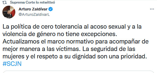 La Suprema Corte de Justicia de la Nación (SJCN) de México informó hoy lunes que suspendió a uno de sus altos directivos señalado por acoso sexual y violencia de género."Por primera vez y demostrando su continuo compromiso con las mujeres y con su política de cero tolerancia y combate al acoso sexual y a la violencia de género, la presidencia de la Suprema Corte de Justicia de la Nación (SCJN) suspende a alto directivo por prácticas de acoso sexual y violencia de género", informó el órgano en un comunicado.El presidente de la SCJN, Arturo Zaldívar, emitió un acuerdo el pasado 2 de septiembre sobre un nuevo mecanismo para prevenir, atender y erradicar el acoso sexual y cualquier otra forma de violencia sexual y de género hacia dentro del Alto Tribunal del país, indicó el texto.Como parte de dicho mecanismo integral, se ordena la creación de un área dentro de la ya existente Unidad General de Igualdad de Género, que será la encargada de proporcionar atención jurídica, médica y psicológica de primer contacto a las víctimas de acoso y violencia sexual, "dotando un adecuado acompañamiento a las denunciantes de este tipo de conductas indebidas"."Asimismo, como parte del acuerdo emitido por el ministro presidente, se reordenan y estructuran las facultades de la direcciones competentes de investigar y substanciar conductas posiblemente constitutivas de faltas administrativas, para que los casos de acoso sexual y violencia de género se atiendan de manera sensible, pronta y adecuada", agrego el boletín.Este nuevo acuerdo permitió que la Unidad General de Investigación de Responsabilidades Administrativas suspendiera a un alto funcionario de la SCJN.Esta suspensión se da como medida cautelar y en protección a las posibles víctimas de acoso y violencia sexual, "hasta en tanto se concluya el procedimiento correspondiente", puntualizó el texto.México vive una encrucijada contra el machismo pues en el país asesinan a más de 10 mujeres al día y los feminicidios -asesinatos por razón de género- aumentaron en México en el primer semestre de 2021 cuando se registraron 508 casos, un 3.25 % más que los 492 del mismo periodo del año anterior.Por esto, desde 2019, el movimiento feminista ha ido creciendo en el país latinoamericano, con grandes movilizaciones y la presencia de grupos radicalizados, mientras que el Presidente de México, Andrés Manuel López Obrador (AMLO) ha llegado a acusar a la derecha de estar detrás de las protestas.Si te interesó esta noticia y quieres saber más, entonces descarga y descubre INFORMAPlus, la aplicación digital de EL INFORMADOR, en donde tenemos contenidos exclusivos, seleccionados por nuestros editores, para darles una experiencia más completa a los lectores.Descarga la aplicación y pruébala GRATIS por treinta días.Para iOS: https://apple.co/35jaVgbPara Android: https://bit.ly/3gwVSEVSi eres suscriptor de EL INFORMADOR tu acceso está incluido, solicítalo al 33 3678-7777GC