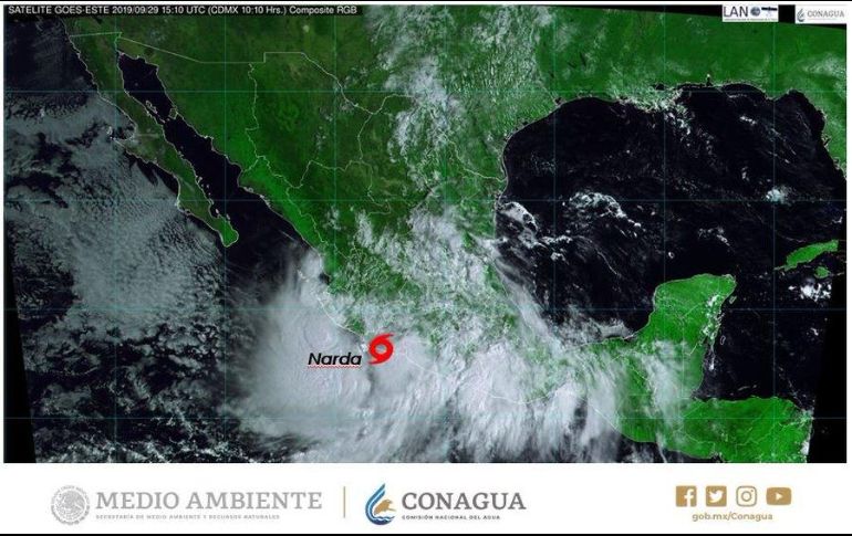En su último reporte, el SMN, dependiente de la Comisión Nacional del Agua (Conagua) señaló que a las 10:00 horas, tiempo del centro de México, el centro de la tormenta tropical "Narda" se ubicó aproximadamente a 15 kilómetros en tierra al noreste de Lázaro Cárdenas, Michoacán y a 250 km al este-sureste de Manzanillo, Colima.Agregó que el fenómeno tiene vientos máximos sostenidos de 75 km/h, rachas de 95 km/h y desplazamiento hacia el noroeste a 24 km/h. Se encuentra "Latitud Norte:18.1° Longitud Oeste: 102.1°.Indicó que la zona de vigilancia por la tormenta tropical "Narda" es desde Acapulco, Guerrero, hasta Cabo Corrientes, Jalisco .Gro., hasta Cabo Corrientes, Jalisco.Explicó que continúa el pronóstico de lluvias intensas a puntuales torrenciales (150 a 250 litros por metro cuadrado) en Nayarit, Jalisco, Colima, Michoacán y Guerrero, y fuertes a puntuales muy fuertes (50 a 75 litros por metro cuadrado) en Aguascalientes, Sinaloa, Durango, Estado de México, Ciudad de México y Morelos.Recomendó extremar precauciones a la población en general en las zonas de los estados mencionados por lluvias, viento y oleaje (incluyendo la navegación marítima), así como atender las recomendaciones emitidas por las autoridades del Sistema Nacional de Protección Civil, en cada entidad.GC