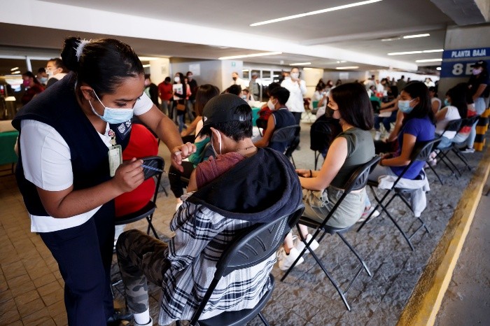 La Ciudad de México arrancó este lunes la vacunación anticovid de jóvenes de entre 15 y 17 años sin comorbilidades en varias ciudades, y en medio de la amenaza de la llegada de la variante ómicron al país."Es un alivio porque ya tienes cierto rango de protección para poder salir", declaró Carol Paulina Carranza, una joven que acudió a su cita para inocularse.Pero además, dijo la adolescente, es un alivio para su familia, que en agosto pasado vivió en carne propia la pandemia, pues tanto ella como su hermano de 15 años y sus dos padres se infectaron del virus."Es otra esperanza para no volverme a contagiar porque es una sensación de ansiedad y estrés muy grande al momento de tener la enfermedad y ver que tu familia está perjudicada por la situación del COVID", reconoce.Cómo ella, miles de jóvenes acudieron a las instalaciones de la Arena Ciudad de México a recibir la primera dosis del biológico Pfizer.Las autoridades estiman que para el próximo jueves habrán vacunado a poco más de 380 mil adolescentes y jóvenes capitalinos sin comorbilidades, y la próxima semana continuarán con los rezagados mayores de 18 años."Estamos esperando un promedio de entre 13 mil y 14 mil jóvenes cada día. El día de hoy estamos esperando poquito más de 13 mil. Esperamos cumplir con la meta", declaró Pablo Vázquez Camacho, subsecretario de Participación Ciudadana y Prevención del delito de la Secretaría de Seguridad Ciudadana de Ciudad de México.JM