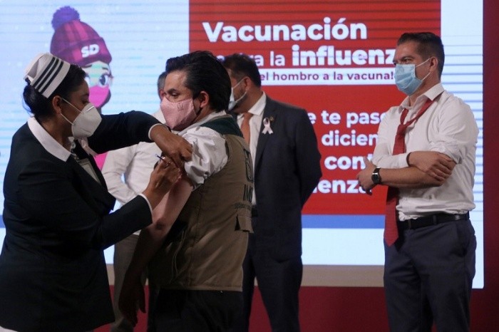 Con la aplicación de la vacuna contra influenza a Hugo López-Gatell Ramírez, subsecretario de Prevención y Promoción de la Salud, Zoé Robledo Aburto, director general del IMSS, Víctor Hugo Borja Aburto, director de Prestaciones Médicas del IMSS y Miriam Esther Veras Godoy, directora general del Centro Nacional para la Salud de la Infancia y Adolescencia (Censia), entre otros, arrancó la campaña de vacunación de esta temporada invernal.Con el apoyo de la jefa Fabiana y otros trabajadores de la Salud, los funcionarios del sector salud recibieron la dosis de inmunización en Palacio Nacional.Este año, el gobierno federal adquirió 36 millones 400 mil vacunas, un incremento de casi cuatro millones con el objetivo de cubrir a toda la población de riesgo, como adultos mayores, niños menores de cinco años, mujeres embarazadas y pacientes con diabetes.El subsecretario advirtió que con la llegada de la influenza, los casos por COVID-19 podrían repuntar, por lo que llamó a la sociedad a aplicarse la vacuna; agregó que en la conferencia nocturna se agregará información sobre los casos de influenza."Vamos a incorporar un informe técnico al informe COVID de todos los días y vamos a ver cómo va incrementando, donde habitualmente hay un punto máximo y comienza a descender"."Es posible que también tengamos repunte de casos, está ocurriendo en todo el hemisferio norte, dado que el coronavitus aunque lo causa virus diferente de influenza, se comporta muy parecido a la influenza, es posible que se presente repunte", dijo.A su vez, Miriam Esther Veras Godoy, directora general del Centro Nacional para la Salud de la Infancia y Adolescencia (Censia) enfatizó que la vacunación contra esta enfermedad respiratoria no es de carácter anual, sino por temporada invernal."Hay personas que se vacunaron en enero, febrero y marzo de 2020, y para esta temporada ya no estarán protegidos contra influenza, es necesario que se vacunen de nuevo porque la inmunización debe ocurrir por temporada invernal, no cada año", declaró.JM