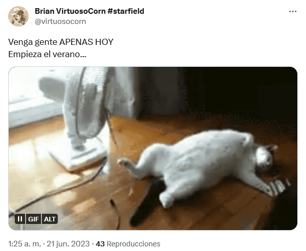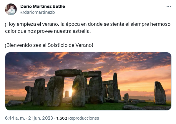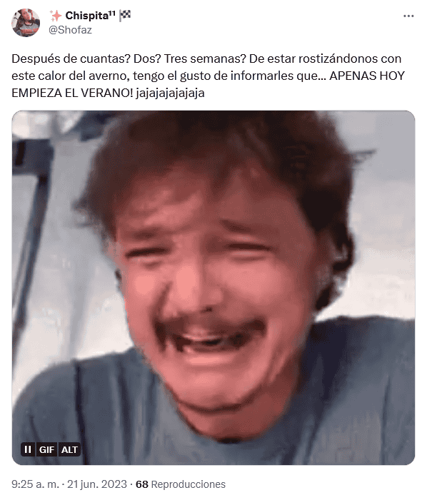 Hoy miércoles 21 de junio inició el solsticio de verano a las 08:57 horas en el hemisferio norte, donde se ubica México.Usuarios de redes sociales no se hicieron esperar y compartieron en Internet los memes y las frases más creativas para darle la bienvenida al primer solsticio del año.Durante el verano se presentan días muy calurosos y lluvias eventuales por la tarde y la noche, dependiendo de la región.El solsticio de verano marca en el hemisferio norte el momento en que el Sol permanece más horas sobre el horizonte. OF