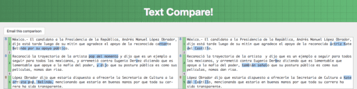 Una noticia claramente falsa, publicada el 10 de junio, señaló que el candidato presidencial Andrés Manuel López Obrador estaría “dispuesto a ofrecerle la Secretaría de Cultura a Belinda”. Ocho días después, otra nota copió el mismo texto, pero para señalar que la titular de Cultura con López Obrador sería la actriz Kate del Castillo.Las dos publicaciones suman casi ocho mil interacciones.La información falsa sobre Belinda se publicó en el portal Retroceso.com, un sitio que ha sido identificado por Verificado 2018 por publicar noticias falsas. Mientras que la información de Del Castillo salió en modonoticia.com, otro portal que recurrentemente publica noticias falsas. Verificado 2018 contrastó las publicaciones con una herramienta para comparar textos y las diferencias son mínimas, solo se modifica el nombre del sujeto implicado. En la siguiente imagen se ven las variaciones sombreadas en azul; el resto es idéntico.En la nota sobre Belinda se dice que el candidato agradeció el apoyo de la cantante pop y declaró que “estaría dispuesto a ofrecerle la Secretaría de Cultura mencionando que estaría en buenas manos porque toda su carrera ha sido transparente”.Y en la nueva versión, sobre la actriz, la noticia falsa asegura que López Obrador dijo que “estaría dispuesto a ofrecerle la Secretaría de Cultura a Kate del Castillo, mencionando que estaría en buenas manos porque su carrera ha sido transparente”.En realidad, la persona propuesta por el candidato para el cargo es Alejandra Frausto Guerrero, exdirectora de Difusión Cultural de la Universidad del Claustro de Sor Juana y del Instituto Guerrerense de la Cultura (IGC).Clonar noticias falsas es una práctica recurrente del portal modonotica.com el cual publicó también una noticia falsa difundida en Argentina para crear otra sobre el expresidente Salinas de Gortari y López Obrador, así como otro refrito que involucró a Miguel Ángel Osorio Chong y la primera dama Angélica Rivera.