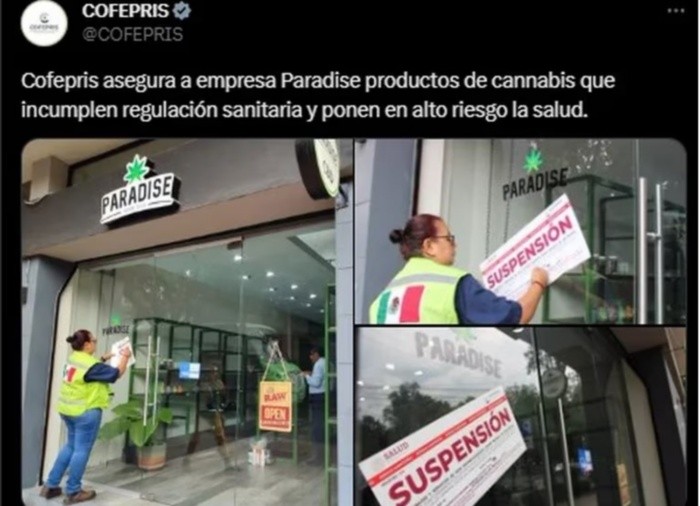 Tras una verificación a diversos establecimientos de la cadena Paradise -empresa ligada al expresidente Vicente Fox- en la Ciudad de México, decidieron clausurar algunas sucursales, informó la Comisión Federal para la Protección contra Riesgos Sanitarios (Cofepris).Las acciones se derivaron de una estrategia para evitar que se comercialicen productos prohibidos con etiquetado y comercialización engañosa y/o que incumplen la regulación sanitaria, según el comunicado que emitió la dependencia.Las decisiones tomadas este lunes tuvieron como objetivo evitar que este tipo de productos pongan en riesgo la salud de compradores y de la población en general, pues señalaron que las autorizaciones se dieron en el sexenio anterior.“Esta autoridad sanitaria ejecuta acciones de vigilancia y jurídicas a las empresas que recibieron autorizaciones para comercialización de productos derivados de la cannabis y marihuana en los últimos días de la administración federal anterior”, se pudo leer.En el comunicado también se explicó que con el fin de proteger la salud de las personas, se incautaron mil 811 piezas de productos que contienen CBD, semillas de cáñamo, así como extractos de cannabis y otras sustancias, debido a que no tienen evidencia de seguridad, calidad u origen de fabricación.Dio a conocer que se tomaron 165 muestras de etiquetas de diferentes productos por presentar diversas irregularidades en la información, una de las que más llamó la atención fue se colocó un código atribuido a la comisión aparentando ser un registro sanitario.Lo anterior porque, de acuerdo con el Reglamento de Control Sanitario de Productos y Servicios, en la etiqueta con la que se comercialicen suplementos alimenticios no se deberá presentar información en la que se ostenten indicaciones preventivas, rehabilitatorias o terapéuticas, además de que no se deberán utilizar estupefacientes o sustancias psicotrópicas en la elaboración de productos de perfumería y belleza.CR