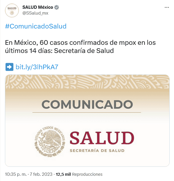 La Secretaría de Salud (Ssa) informó que en los últimos 14 días identificó 60 casos confirmados y 105 probables de mpox o viruela símica en el país.De acuerdo con el Informe Técnico Quincenal de Vigilancia Epidemiológica en México, desde la confirmación del primer caso el 28 de mayo de 2022, y hasta el 6 de febrero de 2023, se han identificado seis mil 385 personas que cumplen la definición operacional de caso probable.De esas, tres mil 828 fueron confirmadas, 329 se encuentran en estudio y dos mil 228 han sido descartadas mediante prueba de laboratorio.Hasta el 6 de febrero se han identificado 14 defunciones, de las cuales cuatro se relacionan directamente con la infección por mpox, dos no se asocian con esta causa y ocho se encuentran en análisis por un grupo de personas expertas en materia de infectología y epidemiología para definir si existe asociación causal.Se trata de 13 hombres y una mujer, quienes durante la atención médica presentaron lesiones compatibles con mpox y que, posterior al estudio de laboratorio, fueron confirmadas.El Instituto de Diagnóstico y Referencia Epidemiológicos (InDRE) notificó que los casos positivos se encuentran distribuidos en las 32 entidades federativas de la siguiente manera:Ciudad de México, dos mil 010 contagios; Jalisco, 400; Estado de México, 357; Quintana Roo, 225; Yucatán, 168; Nuevo León, 85; Puebla, 68; Veracruz, 60; Tabasco, 57; Chiapas, 50; Baja California, 32; Querétaro, 28; Tamaulipas, 28; Hidalgo, 26, y Morelos, 25. Además, Campeche, 23; Chihuahua, 23; Guanajuato, 21; Sinaloa, 19; Aguascalientes, 18; Coahuila, 16; Guerrero, 15; Oaxaca, 13; San Luis Potosí, 11; Nayarit, 10; Tlaxcala, 10; Michoacán, ocho; Colima, seis; Sonora, cinco; Zacatecas, cinco; Baja California Sur, cuatro; y Durango, dos.En cuanto a la distribución por sexo asignado al nacer, el predominio es en hombres, con 97%; el grupo etario de 30 a 34 años es el de mayor prevalencia, el cual presenta tasa de incidencia de 9.8 por cada 100 mil habitantes; es decir, 997 de los tres mil 828 casos confirmados.Los síntomas constantes son: exantema en 100% de los casos; seguido de fiebre con 72.2% y dolores de cabeza con 62.8%.Son más vulnerables a desarrollar la enfermedad quienes viven con VIH, padecen sífilis y diabetes mellitus, entre otras.OF