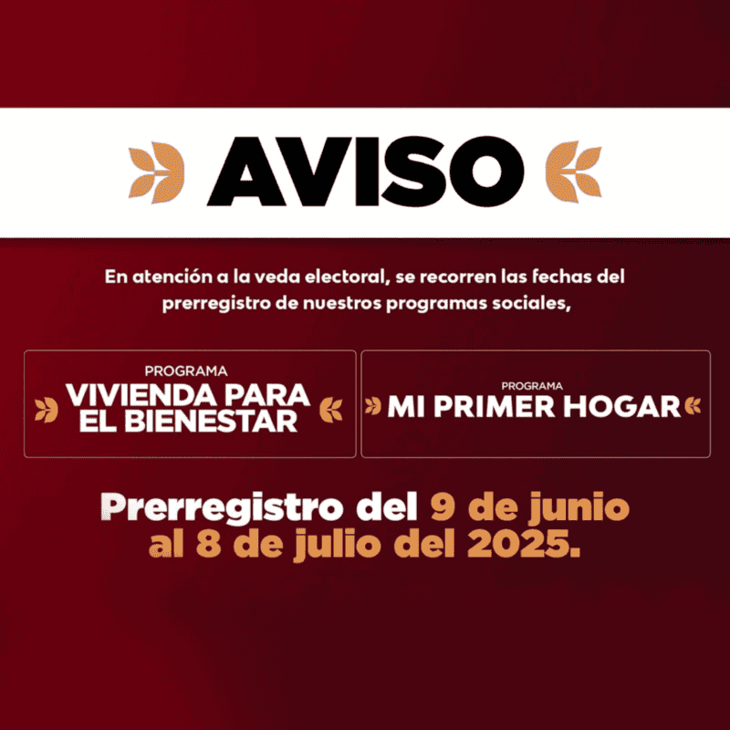 Las autoridades del Estado de México han dado a conocer un nuevo calendario para el prerregistro de los programas sociales "Vivienda para el Bienestar" y "Mi Primer Hogar", operados por el Instituto Mexiquense de la Vivienda Social (Imevis). Estas iniciativas están enfocadas en apoyar a mayores de 18 años que desean mejorar su vivienda a través de ayudas como tinacos, paneles solares y materiales de construcciónDe acuerdo con la información oficial emitida por el Instituto Mexiquense de la Vivienda Social, la modificación del calendario se debe a la veda electoral vigente por las elecciones judiciales del 1 de junio de 2025, que prohíbe la difusión de programas gubernamentales durante este periodo. Por lo anterior, el inicio del prerregistro se ha postergado una semana, comenzando el 9 de junio y concluyendo el 8 de julio de 2025. El proceso se realizará en línea a través del portal oficial: programasimevis.edomex.gob.mx.A, B: 9 y 10 de junioC: 11 y 12 de junioD, E, F: 13 y 16 de junioG: 17 y 18 de junioH, I, J, K, L: 19 y 20 de junioM: 23 y 24 de junioN, Ñ, O, P, Q: 25 y 26 de junioR: 27 y 30 de junioS, T: 1 y 2 de julioU, V, W, X, Y, Z: 3 y 4 de julioRezagados: 7 y 8 de julioLos solicitantes deben completar el prerregistro en las fechas asignadas según la inicial de su primer apellido. Posteriormente, Imevis revisará las solicitudes y contactará a los candidatos que cumplan con los requisitos para que presenten la documentación necesaria en los módulos regionales. Los documentos requeridos incluyen:Estos programas priorizan a sectores vulnerables como mujeres jefas de familia, adultos mayores, personas con discapacidad y comunidades de bajos recursos. Es fundamental que los interesados respeten el calendario establecido para asegurar una atención eficiente y ordenada.Para más información y detalles sobre los requisitos, se recomienda visitar el sitio oficial de Imevis: programasimevis.edomex.gob.mx. YC