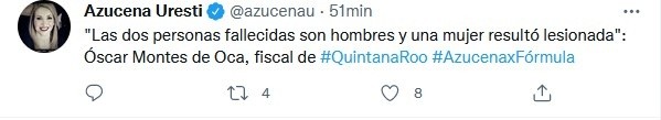 Tras la balacera registrada este viernes en el hotel Xcaret, Óscar Montes de Oca, fiscal de Quintana Roo, dio a conocer que son dos turistas los que fallecieron, uno en la ambulancia y otro en el hospital.Así lo dio a conocer a la periodista Azucena Uresti en entrevista para Radio Fórmula.El fiscal de Quintana Roo dice además que los turistas tienen antecedentes relacionados con drogas, pero descartó que se trate de pugnas entre grupos antagónicos.El gobierno municipal de Solidaridad, a través de la Secretaría de Seguridad Pública, activó este viernes un operativo de búsqueda en el que participan unidades caninas y elementos de la Secretaría de la Defensa Nacional (Sedena) para localizar al probable responsable de disparar a tres ciudadanos de origen canadiense hospedados en el hotel Xcaret.Equipos de reacción pedestre, motorizada y a bordo de otras unidades, recorren las inmediaciones del centro de hospedaje, ubicado en la Riviera Maya, así como en la carretera federal, toda vez que luego de abrir fuego en contra de los turistas, la persona identificada como responsable huyó adentrándose en la selva.En el operativo participan perros especializados en búsqueda de personas y armas; se ha desplegado un dron que sobrevuela la propiedad, la zona de selva, la carretera federal, los filtros y posibles puntos de fuga, informó la dependencia municipal.JM