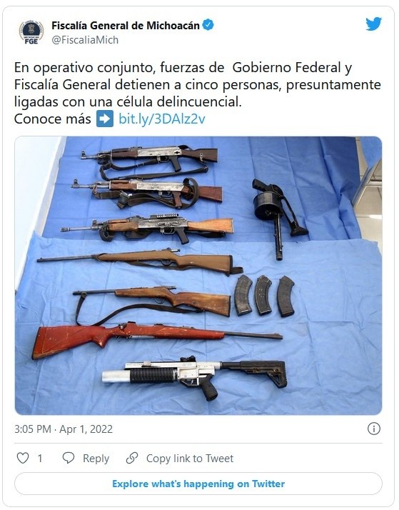 Fuerzas federales y de la Fiscalía de Michoacán detuvieron a cinco presuntos integrantes de la Familia Michoacana vinculados a la masacre de 20 personas en un palenque en Zinapécuaro, el pasado domingo.Fernando José E., José Antonio Q., Adrián C., Juan Antonio M., e Irvin R fueron detenidos durante un operativo en la localidad de El Mago, el municipio de Susupuato, por elementos del Ejército, Guardia Nacional, Coordinación Nacional Antisecuestro (Conase), Guardia Nacional (GN) y la Fiscalía General de Estado de Michoacán (FGE).De acuerdo con autoridades federales, los imputados se encontraban sobre un camino de terracería y se les aseguraron tres rifles 7.62 (AK-47), dos rifles calibre .22, un fusil .270, una escopeta semiautomática calibre 12 mm y un aditamento, lanzagranadas calibre 40 mm, así como cargadores y cartuchos útiles.JM