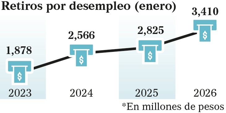 Los retiros por desempleo de las Administradoras de Fondos para el Retiro (Afores) registraron un incremento de 20.7% entre enero de 2025 y enero de 2026, de acuerdo con cifras difundidas por la Comisión Nacional del Sistema de Ahorro para el Retiro (Consar). El aumento refleja la presión económica que enfrentan miles de familias y consolida una tendencia alcista en el uso anticipado de los fondos de ahorro.Solo en enero pasado, los trabajadores retiraron tres mil 410 millones de pesos de sus cuentas individuales por estar desempleados, superior a los dos mil 825 millones reportados en el mismo mes del año previo. Con ello, los retiros alcanzaron un máximo histórico para un mes de enero.El monto mensual más elevado del que se tiene registro ocurrió en diciembre pasado, cuando se retiraron cuatro mil millones de pesos por este concepto. Héctor del Toro, economista e investigador de la Universidad de Guadalajara, explicó que el incremento en los retiros responde a una combinación de factores que han deteriorado la liquidez de los hogares.En primer lugar, señaló, la llamada “cuesta de enero” ha sido más prolongada y severa que en años anteriores. “Nuestros pronósticos indican que podría extenderse hasta la primera semana de mayo, lo que implica varios meses de presión financiera para las familias”.Aunque este año se registró un aumento en el salario mínimo, Del Toro subrayó que el encarecimiento de la canasta básica ha superado ese porcentaje. En un análisis de 123 productos esenciales, 111 mostraron incrementos significativos en distintos niveles, lo que impacta directamente en el gasto mensual, especialmente cuando las compras se realizan en volumen. A ello se suma una presión inflacionaria que, desde su perspectiva, es mayor a la reportada oficialmente (3.87%), así como factores externos como la volatilidad en la paridad del peso-dólar y la aplicación de impuestos a diversos productos. Este entorno deriva en cierres de empresas y pérdidas de empleo. Tan solo en 2025 se reportó la cancelación de 127 mil plazas registradas ante el IMSS.Por eso el año pasado, los retiros por desempleo sumaron 39 mil 118 millones de pesos, una cifra que dimensiona la magnitud del fenómeno.Para ponerlo en perspectiva, el total retirado el año pasado equivale a la construcción de tres Líneas 4 del Tren Ligero.Frente a la falta de ingresos y compromisos ineludibles -como pagos de predial, refrendos e impuestos-, muchas personas optan por retirar recursos de su ahorro para el retiro. Sin embargo, el especialista advirtió que cada disposición reduce el monto disponible para la pensión futura.Si bien reconoció que retirar dinero de la Afore puede ser preferible a contratar un crédito bancario con intereses elevados, recomendó asumirlo como un “préstamo personal” que debe reponerse mediante aportaciones voluntarias una vez que se recupere la estabilidad.Como alternativas de liquidez, mencionó mecanismos como el empeño, que permiten obtener recursos a corto plazo, con la posibilidad de recuperar la prenda entregada en garantía. No obstante, insistió en que la mejor estrategia ante el complejo panorama económico del primer semestre del año es ajustar el gasto, reducir deudas y evitar comprometer el patrimonio destinado al retiro. El monto depende de la modalidad y la antigüedad de la cuenta, considerando las últimas 250 semanas de cotización.Modalidad A (tres años con la cuenta abierta): 30 días de su último Salario Base de Cotización o el 11.5% de la Subcuenta de retiro, cesantía en edad avanzada y vejez.Modalidad B (cinco años o más con la cuenta abierta): Lo que resulte menor entre 90 días de su Salario Base de Cotización o el 11.5% de los recursos de la Subcuenta. El retiro por desempleo afecta su pensión futura. El IMSS realizará un descuento proporcional en las semanas cotizadas según el monto retirado. Si no se reintegran estos recursos, la pensión final será menor. CT