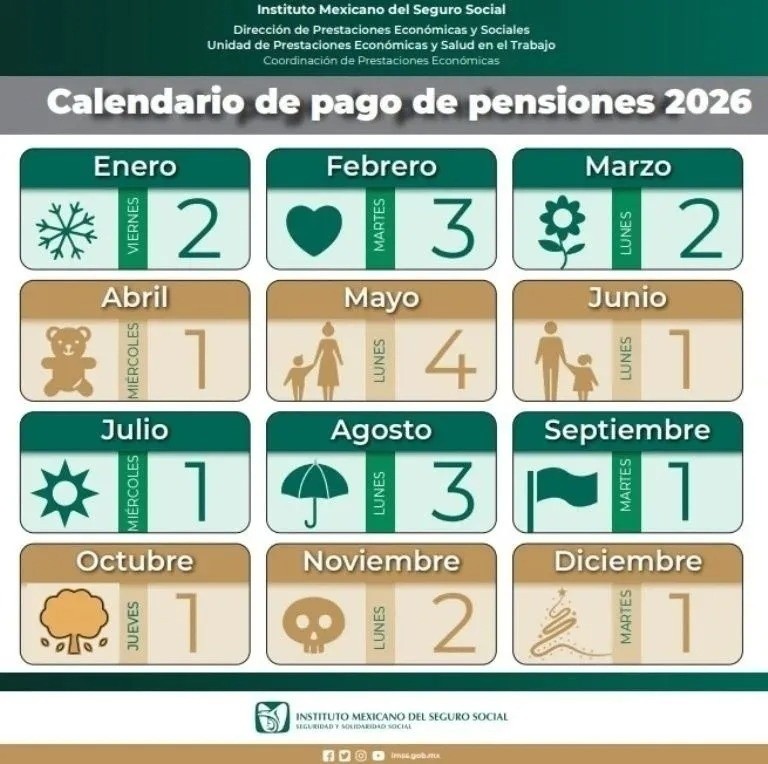Calendario de pagos de la Pensión IMSS e ISSSTE de ABRIL 2026
