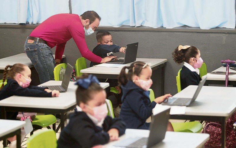 Estudiantes de primaria utilizan computadoras en clase bajo la supervisión del profesor, como parte de las actividades educativas. EL INFORMADOR/Archivo