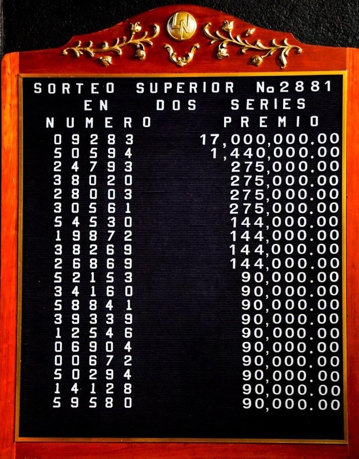 La noche del viernes, la Lotería Nacional celebró el Sorteo Superior 2881, que entregó un premio total de 17 millones de pesos, repartidos en dos series de 8 millones 500 mil pesos cada una.