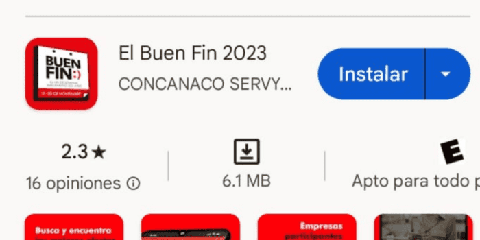 Ya se acerca el Buen Fin y este 2023 se realizará del 17 al 20 de noviembre, por lo que es importante que quien desee hacer compras este día, esté bien informado y pueda cotejar cuáles son las verdaderas ofertas. Para esto se ha lanzado la app oficial que te puede ayudar a mejorar la experiencia de compra en línea y aprovechar los descuentos que ofrecen.La Cámara Nacional de Comercio desarrolló para este año dos herramientas digitales para facilitar y mejorar la experiencia de El Buen Fin 2023. Se trata de una aplicación para el dispositivo y el portal web. Descargar la aplicación de El Buen Fin 2023 es muy sencillo, sólo tienes que acceder a la Play Store en tu dispositivo Android o, si es iPhone, en la App Store y buscar El Buen Fin 2023. Asegúrate que la aplicación sea ofrecida por CONCANACO SERVYTUR.Una vez que tengas la aplicación instalada, para iniciar sesión, la aplicación solicitará tu código postal, lo que permitirá localizar las tiendas cercanas. Pero también puedes seleccionar la opción "Nacional", de esta forma, accederás a promociones en negocios de toda la República.Mantente al día con las noticias, únete a nuestro canal de Whatsapp.
