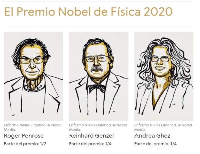 El británico Roger Penrose, el alemán Reinhard Genzel y la estadounidense Andrea Ghez fueron galardonados este martes con el Premio Nobel de Física por sus investigaciones sobre los agujeros negros del universo.El Nobel a los tres expertos es "absolutamente merecido", según señaló Roberto Emparan, físico e investigador del Instituto de Ciencias del Cosmos de la Universidad de Barcelona, porque tanto los descubrimientos teóricos del primero, como las observaciones astronómicas de los segundos han sido fundamentales para la comprensión de los agujeros negros y la evidencia de su existencia.Emparan detalló que en los años sesenta, Penrose, uno de los principales físicos teóricos de nuestro tiempo —y quien se llevó la mitad del premio—, demostró que la Teoría General de la Relatividad de Albert Einstein predice la formación de "singularidades" en el colapso de estrellas muy masivas.Estas singularidades se esconden en el interior de los agujeros negros y el trabajo de Penrose fue esencial para que los físicos teóricos concluyesen que estos han de ser objetos que existan en nuestro universo.Por su parte, Ghez y Genzel —quienes se llevaron la cuarta parte del premio cada uno— son astrónomos que han dirigido equipos independientes que han demostrado que en el centro de nuestra galaxia reside un agujero negro supermasivo, con una masa equivalente a la de cuatro millones de soles, detalló.Para explicar sus trabajos, Emparan se preguntó: “¿cómo se puede descubrir la presencia de un objeto absolutamente oscuro?” En este caso lo hicieron a través del "tirón gravitatorio" que provoca un objeto tan masivo y compacto.Y ¿cómo podrías descubrir al hombre invisible en una sala llena de gente? "Si vesque hay un grupo de personas que están siendo zarandeadas de forma fuerte en torno a un punto en el que no ves a nadie, podrías inferir que ahí está ese hombre invisible que buscas"."Ghez y Genzel han realizado observaciones de estrellas en el centro de la galaxia que están siendo atraídas y orbitan en torno a un punto en el que no hay nada que emita luz. En ese punto hay un objeto muy pequeño, muy masivo y no luminoso, para el que la principal (ya casi única) explicación que tenemos es que sea un agujero negro supermasivo".Según este investigador, los agujeros negros son objetos absolutos, pozos inescrutables, absolutamente oscuros, de los que nada, ni siquiera la luz, puede escapar, y tienen misterio: "no podemos ver lo que hay en su interior a menos que nos arriesguemos a lanzarnos a ellos".En su presencia, el tiempo se distorsiona de forma casi inimaginable, lo que da ideas sorprendentes para la ciencia-ficción (película "Interstellar"), y para los físicos profesionales los agujeros negros son los lugares donde las leyes del universo se llevan a sus límites, donde nuestras nociones de espacio y tiempo se alteran de forma radical.Sin embargo, aún hay preguntas sin resolver. “¿Qué sucede con lo que cae a un agujero negro? ¿Se pierde para siempre, o puede aparecer de forma inesperada, quizás irreconocible?” Estas son preguntas para las que todavía no tenemos respuesta; "son por tanto los laboratorios perfectos donde estudiar los límites de la naturaleza y descubrir qué hay más allá de lo ahora conocido". Conoce más sobre las investigaciones de Roger Penrose, Reinhard Genzel y Andrea Ghez AQUÍ. Con información de EFE.AC