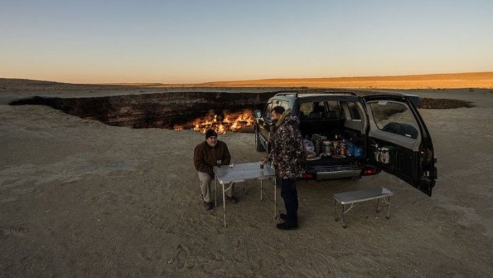 Bienvenidos a "las puertas del infierno".Así es como se conoce al cráter de Darvaza, ubicado en el norte de la antigua república soviética de Turkmenistán."Cuando pude verlo por primera vez y caminar hasta el borde, y el viento desértico y caliente procedente del cráter me golpeó en la cara, sentí que aquel era el tipo de lugar del que podría salir el propio Satanás, con tridente y todo", le dice a la BBC el explorador canadiense George Kourounis.Con 69 metros de ancho y 30 de profundidad, de su interior emana el gas natural que ha estado ardiendo durante décadas.En una expedición que realizó al lugar 2013 para el canal de National Geographic, Kourounis intentó averiguar cómo se originó este "fuego eterno".Pero salió de sus investigaciones con más dudas que respuestas.La historia más difundida dice que en 1971, varios geólogos soviéticos estaban perforando el desierto de Karakum con el objetivo de hallar petróleo.En ello, se encontraron con una bolsa de gas natural que hizo que la tierra se derrumbara, formando tres grandes sumideros.Para evitar que el metano se liberara a la atmósfera, una teoría apunta a que los geólogos prendieron fuego a uno de los sumideros, pensando que se quemaría en cuestión de semanas.Pero Kourounis dice que no hay documentos que respalden esa versión.Realizó una primera expedición a la zona en 2013 y tras una investigación local, se encontró con que nadie sabe realmente cómo se originó."Una de las cosas más llamativas y frustrantes sobre este cráter es que realmente no hay mucha información sobre él. (No se puede conseguir) ni siquiera visitando el país", dice el explorador."Hice todo lo posible para encontrar algún informe oficial o registro, algún papel que mencionara el incidente… Pero, nada".Según geólogos turcomanos, el enorme cráter en realidad se formó en la década de 1960 y empezó a arder en la década de 1980."Incluso hay controversia sobre si se prendió de forma accidental, como por la caída de un rayo, o si fue intencional", señala Kourounis.Otra teoría señala que pudieron haber aplicado la técnica de flaring, común en la extracción de gas natural, en la que los excedentes son quemadosintencionalmente por economía y seguridad.Si esto fuera así, al ser el de la energía un asunto estratégico para los soviéticos, los informes o registros al respecto habrían sido clasificados como de alto secreto, creen los expertos.El historiador Jeronim Perovic dice que el misterio de "las puertas del infierno" es lógico."Es un reflejo de cómo funcionaban las cosas en la época soviética (…). En esos tiempos solo se reportaban los éxitos, no las fallas. Así que si la gente local hacía algo mal, nadie quería que se supiera", le explica a la BBC.Al haber surgido el cráter en un desierto remoto, el impacto ocurrido era mínimo.Y ya que la Unión Soviética no tenía problemas de suministro de gas, pues producía unos 700.000 millones de metros cúbicos al año, es probable que quemarlo hubiera sido la alternativa más práctica, cree el experto."Quemar 15.000 o 16.000 metros cúbicos por año, que es cuatro veces lo que usa Suiza al año, para ellos no era nada. Así que en lugar de pensar en qué se podría usar racionalmente o ponerlo en una tubería, que requiere construir infraestructura, simplemente podrían haber decidido quemarlo", señala.Por otro lado, Stefan Green, un microbiologista que participó en la expedición de Kourounis, explica que "liberar metano de manera incontrolada es una muy mala idea", por lo que tiene cierta lógica quemarlo."Es increíblemente peligroso, porque si se está quemando constantemente, no se acumula en un área en particular. De otra forma, tendrás una enorme explosión de vez en cuando", sostiene.Si bien es dañino generar dióxido de carbono con la quema de gas, es mucho más nocivo liberar el metano a la atmósfera. Es una práctica muy común de países petroleros como Irak, Irán o EE.UU.Sea como sea, el combustible ha perdurado durante años. "Desafortunadamente es un problema que no ha sido solucionado hasta hoy", dice Perovic.Turkmenistán sí consideró en un momento dado extinguir el fuego. Pero las autoridades decidieron que era una buena forma de promover el turismo.El pozo de fuego que eructa metano se ha convertido en una de las atracciones turísticas más populares en un país que solo recibe unos 6.000 visitantes al año.Su resplandor nocturno fascina a los aventureros que se adentran en zonas inhóspitas como el desierto de Karakum, al que no es sencillo llegar.En esa línea, George Kourounis describe lo increíble que fue para él."Pararse en el fondo con un traje protector, con el que pareces astronauta, rodeado de lo que llamo un coliseo de fuego, es una de las experiencias más cercanas a visitar otro mundo aquí en la Tierra que alguien puede tener".*Basado en el reportaje de Adrian Hartrick y Dominika Ozynska para BBC Travel.***Ahora puedes recibir notificaciones de BBC Mundo. Descarga la nueva versión de nuestra app y actívalas para no perderte nuestro mejor contenido.