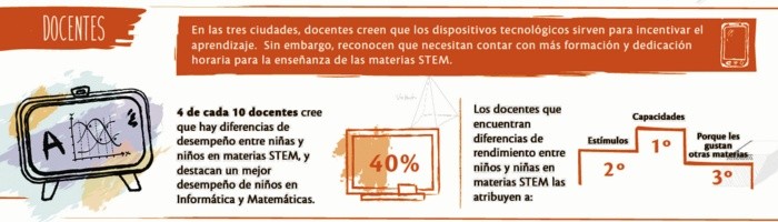Tras el estudio realizado por la Cátedra UNESCO Mujer Ciencia y Tecnología en América Latina-FLACSO Argentina, la asociación civil Chicos.net y Disney Latinoamérica, sobre cómo los niños y niñas de entre seis y 10 años de edad se vinculan con la Ciencia, la Tecnología, la Ingeniería y las Matemáticas (STEM, de la sigla en inglés: Science, Technology, Engineering and Mathematics), se dieron a conocer los resultados de esta investigación, la cual fue fundamentada en “la preocupación por el escaso número de mujeres en las carreras y profesiones relacionadas con el STEM”.El estudio fue realizado en la Ciudad de México, Buenos Aires (Argentina) y Sao Paulo (Brasil). Se enfocó en cómo los docentes, madres y padres de familia influyen en el vínculo de las niñas con las disciplinas mencionadas y su interés en ellas. Además, el estudio detalla qué condiciones favorecen y/o limitan desde la infancia la igualdad de oportunidades de varones y mujeres para desarrollarse en lo que padres y docentes entienden como las profesiones del futuro.De acuerdo con la Agenda 2030 entre sus metas de Objetivos del Desarrollo Sostenible de Naciones Unidas, este es un asunto crítico que impacta negativamente en la competitividad y productividad económica de los países, por lo que se vuelve un tema clave a nivel personal para explorar las diversas habilidades creativas, innovación y resolución de problemas para cada individuo.El estudio hecho busca reflejar de qué manera las niñas y niños van construyendo desde sus primeros años en la escuela una relación con las áreas y actividades STEM y detectar cómo inciden en ello los estereotipos y sesgos de género.A continuación, estos son los principales resultados del estudio.* El estudio fue realizado entre abril y octubre de 20171.- Cómo las niñas y niños se vinculan con la Ciencia, Tecnología, Ingeniería y Matemáticas• En sus hogares, los niños y niñas realizan distintas actividades/juegos relacionados con STEM; principalmente hacen experimentos y acceden a contenidos audiovisuales (documentales) relacionados con el mundo de las ciencias. En un 60%, los niños y niñas expresan que les gusta mucho realizar experimentos.-En Ciudad de México y Ciudad de Buenos Aires, el interés de las niñas por las Matemáticas decrece a medida que avanzan en el trayecto escolar. Niñas entre seis y ocho indican en un 30% que lo que menos les gusta del colegio son las Matemáticas, y entre los nueve y 10 años ese porcentaje aumenta a 40%.-Los dispositivos tecnológicos ocupan un lugar central en sus vidas, en especial fuera del ámbito escolar. Aunque dicen que estudiar con ellos fomenta su interés por aprender, el principal uso que hacen de la tecnología en Ciudad de México es el juego (70% en el caso de niñas de 6 a 8 y 65% para niños de la misma edad). Sólo el 20% de las niñas y el 15% de los niños de 9 a 10 años los emplean para hacer la tarea y leer, respectivamente.2.- La visión de padres y madres sobre el aprendizaje en STEM• La mayoría de los padres/madres alentaría a sus hijos/as a seguir sus gustos, sin importar que la carrera elegida esté asociada al mundo masculino en el caso de las mujeres, o al femenino en el de los varones. Son pocos/as quienes intentarían disuadir la elección de su hijo o hija en base a cuestiones relacionadas con las desigualdades de género.-En Ciudad de México, el porcentaje de quienes aconsejan seguir la vocación es aún más alto que en Ciudad de Buenos Aires y Sao Paulo y prevalece en relación con las hijas mujeres (95% vs. 91%). Más padres y madres validan la elección de sus hijos/as por carreras no tradicionales porque ello puede ampliar sus posibilidades de desarrollo profesional.-En Ciudad de Buenos Aires, la mayoría de los padres y madres piensa que los varones tienen mejor rendimiento en Tecnología (30% varones vs. 8% mujeres), Matemática (20% vs. 17%) e Informática (21% vs. 11%) y las chicas en Ciencia (21% vs. 14%). En Sao Paulo el 53% le asigna mejor rendimiento a las chicas en Ciencia (23% mujeres vs. 6% varones) y a los varones en Informática (17% vs. 15%) y Matemáticas (18% vs. 15%). En Ciudad de México, sólo un 38% encuentra diferencias en alguna de las áreas STEM. Al igual que en las otras ciudades consideran que ellas se destacan en Ciencia (12% vs. 6%). En cuanto a Matemática están bastante parejos (13% vs. 11%); no así en Informática (varones 14% vs. mujeres 7%).3.- La visión de los docentes sobre el aprendizaje en STEM• En sintonía con lo expresado por madres y padres, los docentes alientan a sus alumnos a experimentar y desarrollar su vocación sin importar que su área de interés esté asociada culturalmente con un estereotipo de género en particular. Valoran ante todo el gusto de ellos por las actividades que más les convoque o motive.-En Ciudad de Buenos Aires, el 70% de los docentes adhieren a esta afirmación. Sin embargo, 1 de cada 2 encuestados/as encuentra diferencias en, al menos, una disciplina. Sostienen que los varones alcanzan mejores logros en Tecnología (30% vs. 3%), Informática (22% vs. 2%) y Ciencia (13% vs. 10%) y ellas en Matemática (13% vs. 10%).-En Sao Paulo, el 80% de los docentes no detecta diferencias, pero 1 de cada 3 percibe que ellos o ellas tienen mejor rendimiento en alguna de estas áreas. En este grupo, la tendencia indica que consideran que las chicas se destacan en Ciencia (11% vs. 4%) y los chicos en Matemática (12% vs. 6%) e Informática (16% vs. 2%).-En Ciudad de México, también el 80% de los docentes no registra diferencias, pero 4 de cada 10 encuestados/as sí las percibe. Desde esta visión, ellas tienen mejor rendimiento en Ciencias (12% vs. 8%) y ellos en Matemática (16% vs. 8%) e Informática (12% vs. 5%).