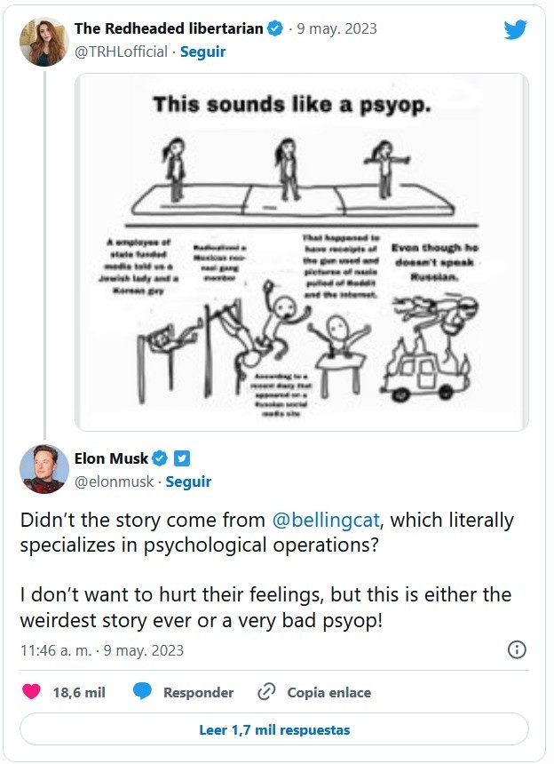 El director ejecutivo de Twitter, Elon Musk, ha sido criticado por amplificar afirmaciones falsas y engañosas en su red social en meses recientes, a pesar de las afirmaciones de sus simpatizantes de que el magnate sólo está "haciendo preguntas" o "desafiando la narrativa tradicional".Musk, que tiene la cuenta con más seguidores en la plataforma, suele ser cauteloso con la redacción de sus tuits, sin embargo interactúa con importantes cuentas de la derecha estadounidense, incluyendo algunas conocidas por compartir información falsa.El equipo de verificación de la BBC ha analizado algunas de las teorías falsas y declaraciones incendiarias en Twitter sobre las que Musk ha comentado en meses recientes.Musk ha puesto en duda repetidamente la evidencia que demuestra que el sospechoso de una reciente balacera en un centro comercial en Texas tenía inclinaciones neonazis.Las cuentas del atacante en YouTube y la red social rusa Odnoklassniki fueron inicialmente descubiertas por el grupo investigativo de sistema abierto Bellingcat, donde aparecían fotos de tatuajes con esvásticas, un largo testamento violento y un meme que mencionaba "niños latinos" y la frase "conviértete en un supremacista blanco".Esas cuentas también fueron examinadas independientemente por la BBC y otros periodistas, y la policía afirmó que el atacante "tenía ideas neonazis", aunque los motivos por los que mató a ocho personas siguen siendo investigados.No obstante, Musk puso en duda la evidencia y, sin ofrecer ningunas pruebas de su parte, aludiendo que Bellingcat estaba involucrado en "operativos psicológicos", o "psyops", como se conoce en inglés. Los operativos psicológicos son comúnmente utilizados en guerra o contra países extranjeros hostiles, como una forma de provocar a que el rival piense o actúe de una manera en particular.Pero la idea descabellada de que las autoridades habitualmente realizan ese tipo de operativos vinculados a tiroteos indiscriminados o ataques terroristas para influir en la opinión pública se ha convertido en un tema de los círculos adeptos al porte de armas en Estados Unidos.Musk se ha referido varias veces a este popular concepto de "psyops", por ejemplo en marzo, cuando prometió enfrentar la "manipulación de la opinión pública" en Twitter usando inteligencia artificial.En respuesta, el fundador de Bellingcat, Eliot Higgins, catalogó al dueño de Twitter como "un idiota que consume medios basura". Musk no respondió a las solicitudes de un comentario.Musk reiteró sus aseveraciones en una entrevista con el medio CNBC la semana pasada, afirmando que Odnoklassniki era un sitio "oscuro" del que "nadie jamás ha escuchado". Pero Odnoklassniki es una de las redes sociales más populares en Rusia y la existencia del perfil del atacante en esa plataforma fue revelada por primera vez por el diario The New York Times, citando a la policía y fuentes de seguridad, antes de que fuera descubierto por Bellingcat usando la herramienta de búsqueda de la plataforma.Musk ha cuestionado varias veces algunos de los detalles de las revueltas en el Capitolio en Washington del 6 de enero de 2021, pero sus declaraciones más polémicas sucedieron en marzo, cuando pareció sugerir que uno de los más reconocidos participantes del levantamiento había sido condenado equivocadamente.En su cuenta de Twitter, Musk afirmó que Jacob Chansley, el hombre conocido como el "chamán de QAnon", sentenciado a 41 meses de cárcel, había "recibido 4 años de prisión por una gira [del Capitolio] no violenta y acompañado por policías". Las declaraciones se basaron en un corto video que muestra a Chansely caminando por los corredores del Congreso, flanqueado por policías y que fue emitido por en el programa del expresentador del noticiero de Fox News, Tucker Carlson.Sin embargo, otras acciones de Chansley ese 6 de enero de 2021 también fueron captadas por las cámaras. Se le ve repetidamente rechazando las órdenes de la policía de abandonar el recinto y fue filmado gritando dentro de la cámara del Senado.Chansely fue imputado de seis crímenes federales y firmó una declaración de culpabilidad aceptando el cargo de obstrucción de un procedimiento oficial como "verdadera y certero".Musk fue criticado el año asado después de compartir declaraciones infundadas tras el ataque contra Paul Pelosi, el esposo de la entonces presidenta de la Cámara de Representantes de EE.UU., Nancy Pelosi, en su residencia por un hombre que había promovido una variedad de teorías de conspiración de extrema derecha. Una noticia falsa sobre el ataque que se volvió viral sugería que Pelosi, de 82 años, y su atacantes David DePape, de 42, estaban en una relación homosexual y que habían tenido un pelea ebrios.Aunque muy extrema, la afirmación empezó a ganar seguidores en EE.UU. después de que Musk lanzara en Twitter un artículo de un sitio web que planteaba la misma teoría.El sitio web que Musk vinculó tiene un historial de publicar noticias erróneas, incluyendo un artículo de 2016 que afirmaba que Hilary Clinton había muerto.Contrario a los otros ejemplos, Musk eliminó el tuit después y pidió disculpas por el error.También en la mira de Musk recientemente ha estado el multimillonario George Soros, cuyo financiamiento de causas liberales y progresivas a través de su fundación filantrópica lo ha convertido en el ogro de los conservadores y activistas de derecha.Musk sostuvo que Soros "quiere erosionar el mismo tejido de la civilización" y que "odia a la humanidad". Tres días antes de esas declaraciones, el fondo de inversión de Soros anunció que había vendido sus acciones en Tesla, la empresa de autos eléctricos de Musk.Musk comparó a Soros con Magneto, el personaje de la serie de fantasía de Marvel que, como el Soros de la vida real, sobrevivió el holocausto.Los tuits provocaron la condena de la Liga Antidifamación, del principal grupo de defensa de los judíos en Estados Unidos y de 