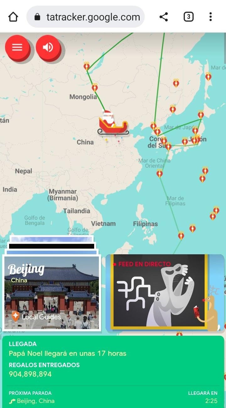 ¿Dónde está Santa Claus? Deja la magia envuelva esta Navidad 2022 y muéstrale a los más pequeños de tu hogar cuál es el recorrido que Papá Noel tiene que hacer cada año para entregar regalos a los niños de todo el mundo a través de Santa Tracker.Como cada año, Google habilitó la plataforma para seguir el recorrido de Santa Claus que, hasta la publicación de esta nota, ya ha pasado por países como La India, Tailandia y Afganistán. Además, ha entregado más de tres billones de regalos.Esta es una oportunidad no solo para despertar el espíritu navideño, sino también para aprender un poco de geografía y conocer, de manera virtual, decenas de ciudades alrededor del planeta.Pero Santa Tracker no solo está hecho para mostrar el progreso de la entrega de regalos, también incluye juegos y actividades para chicos y grandes.¡No pierdas la magia, aprovecha la tecnología para volver a creer y visita Santa Tracker!OF