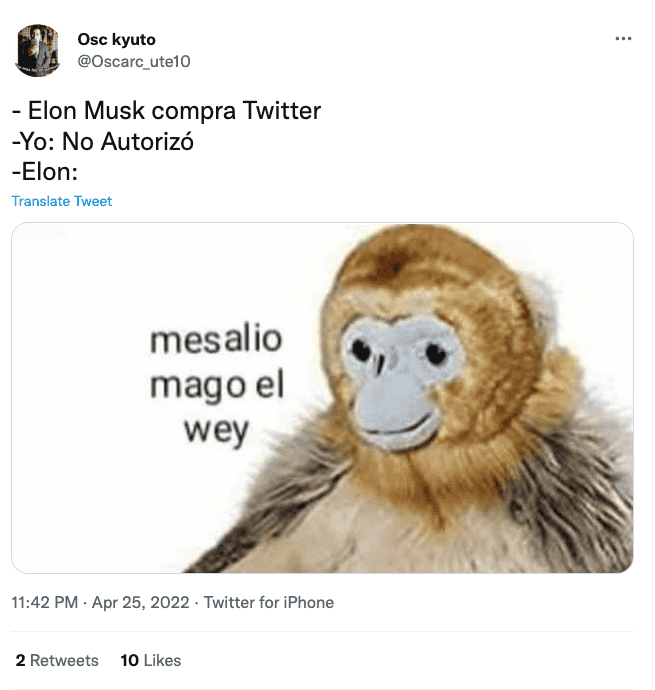 Después de que Twitter llegara a un acuerdo con Elon Musk para venderle la red social, se ha vuelto tendencia la frase “No autorizo”, que prohíbe al empresario a hacer uso de datos personales de los usuariosEste 25 de abril se ha anunciado de manera oficial que el empresario, Elon Musk, CEO de Tesla y SpaceX— llegó a un acuerdo para comprar Twitter por aproximadamente 44 mil millones de dólares. Se espera que la negociación se cierre a finales de año, pero desde ahora diversos usuarios de la plataforma comienzan a especular qué cambios llegarán a la popular red social. Una de las tendencias principales en Twitter éste 25 de abril es la frase “No autorizo”, ya que los usuarios de la plataforma exigen al próximo dueño de Twitter que no utilice sus datos personales así como ocurrió con Mark Zuckerberg y Facebook.“No autorizo ni doy permiso para que Elon Musk pueda usar mis imágenes, información, mensajes, fotos, mensajes eliminados, archivos, etc. Pasa este mensaje a 10 contactos para que tu perfil quede protegido”, dicen algunos de los tweets publicados tras el anuncio de las negociaciones entre Twitter y Elon Musk.Sin embargo, otras personas se han tomado este tema con humor, y existen infinidad de memes que hacen burla a la paranoia de dichos usuarios. Elon Musk ha declarado que la compra de Twitter se debe a que cree que la red social no estaba cumpliendo con su promesa de servir como una plataforma de libre expresión, por lo que algunas reformas que posiblemente sí ocurrirán en la plataforma será la relajación de las restricciones a sus contenidos y la eliminación de cuentas “fake”. MR