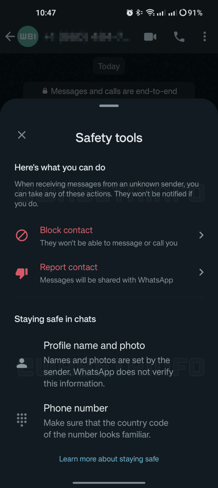 Las actualizaciones de WhatsApp continúan y en esta ocasión se han implementado nuevas herramientas de seguridad con el objetivo de proteger a los usuarios de mensajes que provengan de números desconocidos. El portal WABetaInfo ha anunciado que dichas herramientas están disponible en la versión de Android 2.23.16.6 que está disponible en Google Play Store.De acuerdo con una captura de pantalla compartida por WABetaInfo, se puede observar que se han implementado nuevas acciones para que los usuarios reaccionen cuando les llegan mensajes de números desconocidos.Además de las que ya conocemos como Bloquear contacto o Reportar Contacto, WhatsApp ha añadido información sobre cómo mantenerse seguro en los chats al verificar el nombre de perfil y la foto del usuario que le está enviando mensaje, así como el código del país del número telefónico para comprobar si es del mismo país.Ambas herramientas son importantes, ya que actualmente han sucedido estafas en las que se utilizan códigos de otros países para enviar mensajes a sus víctimas, además que los perfiles no cuentan con nombre de usuario ni foto de perfil.También, se ha añadido la función de impedir que el remitente conozca si se leyó o no el mensaje enviado; "las herramientas de seguridad no solo resaltan información sobre lo que los usuarios pueden hacer cuando reciben un mensaje de contactos desconocidos, sino que también presentan una nueva función que garantiza que el destinatario no sepa si ha leído sus mensajes", señala WABetaInfo.Esta función es bastante útil sobre todo cuando se tiene activada la función de "confirmaciones de lectura", pues con la nueva herramienta de WhatsApp no se le notificará al remitente si el mensaje fue leído hasta que se elija responder o se añada a la lista de contactos, lo cual le brinda al usuario mayor privacidad.Dichas herramientas aún se encuentran en su versión beta, sin embargo, se espera que en las próximas semanas comience a llegar a los usuarios. YC