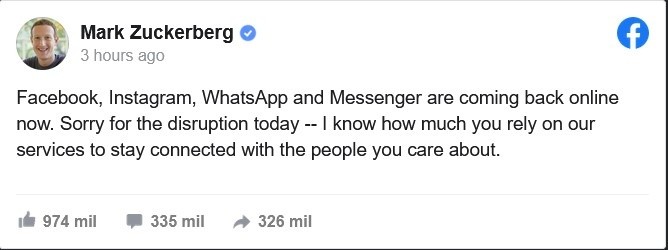 Cerca de las 10:30 de la mañana, tiempo del centro de México, usuarios comenzaron a reportar la caída de la varias aplicaciones, entre las que estaban WhatsApp, Instagram, Facebook y Messenger, todas ellas del grupo del que es propietario el empresario Mark Zuckerberg.Fueron varias horas de caída. Posteriormente, estas redes sociales comenzaron a tener una intermitencia hasta cerca de las 18:00 horas que se regularizaron los servicios, momento en que los usarios recibieron de golpe los mensajes que no habían podido recibir.Ante esto, Mark Zuckerberg emitió una disculpa pública para sus usuarios: "Facebook, Instagram, WhatsApp and Messenger are coming back online now. Sorry for the disruption today -- I know how much you rely on our services to stay connected with the people you care about" ("Facebook, Instagram, WhatsApp y Messenger están volviendo a estar en línea ahora. Perdón por la interrupción de hoy -lunes-. Sé lo mucho que dependes de nuestros servicios para mantenerte conectado con las personas que quieres").Al respecto de esta caída, el blog de Cloudflare publicó que notaron que Facebook había dejado de anunciar las rutas a sus prefijos DNS. "Eso significaba que, al menos, los servidores DNS de Facebook no estaban disponibles. Debido a esto, el solucionador de DNS 1.1.1.1 de Cloudflare ya no podía responder a las consultas que solicitaban la dirección IP de facebook.com o instagram.com... Como consecuencia directa de esto, los resolutores de DNS de todo el mundo dejaron de resolver sus nombres de dominio".La caída de apps tan necesarias en nuestra vida diaria como WhatsApp, Instagram y Facebook, solamente nos recuerda que el Internet es un sistema complejo que depende de varios elementos para funcionar y si uno falla, comienza a colapsar.Si te interesó esta noticia y quieres saber más, entonces descarga y descubre INFORMAPlus, la aplicación digital de EL INFORMADOR, en donde tenemos contenidos exclusivos, seleccionados por nuestros editores, para darles una experiencia más completa a los lectores. Si eres suscriptor de EL INFORMADOR tu acceso está incluido, solicítalo al 33 3678-7777.Descarga la aplicación y pruébala GRATIS por treinta días.Para iOS: https://apple.co/35jaVgbPara Android: https://bit.ly/3gwVSEVJM