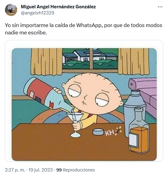 Este miércoles, la aplicación de mensajería instantánea WhatsApp volvió a sufrir una caída y su servicio no funciona ni en la versión móvil como en web. "No de nuevo", dijo el usuario @abelfllores en su cuenta de Twitter.WhatsApp reporta problemas en diferentes partes del mundo, de acuerdo con información del portal Downdetector.Según la gráfica, los problemas comenzaron a reportarse alrededor de las 14:00 horas, y según DownDetector, la red social presenta problemas en la versión web y para iniciar sesión en la aplicación.Como es de esperarse, usuarios de redes sociales han desatado el caos y han comenzado a cuestionar si WhatsApp se cayó o nadie les quiere contestar, y han corrido para publicar memes y mensajes de queja.OF